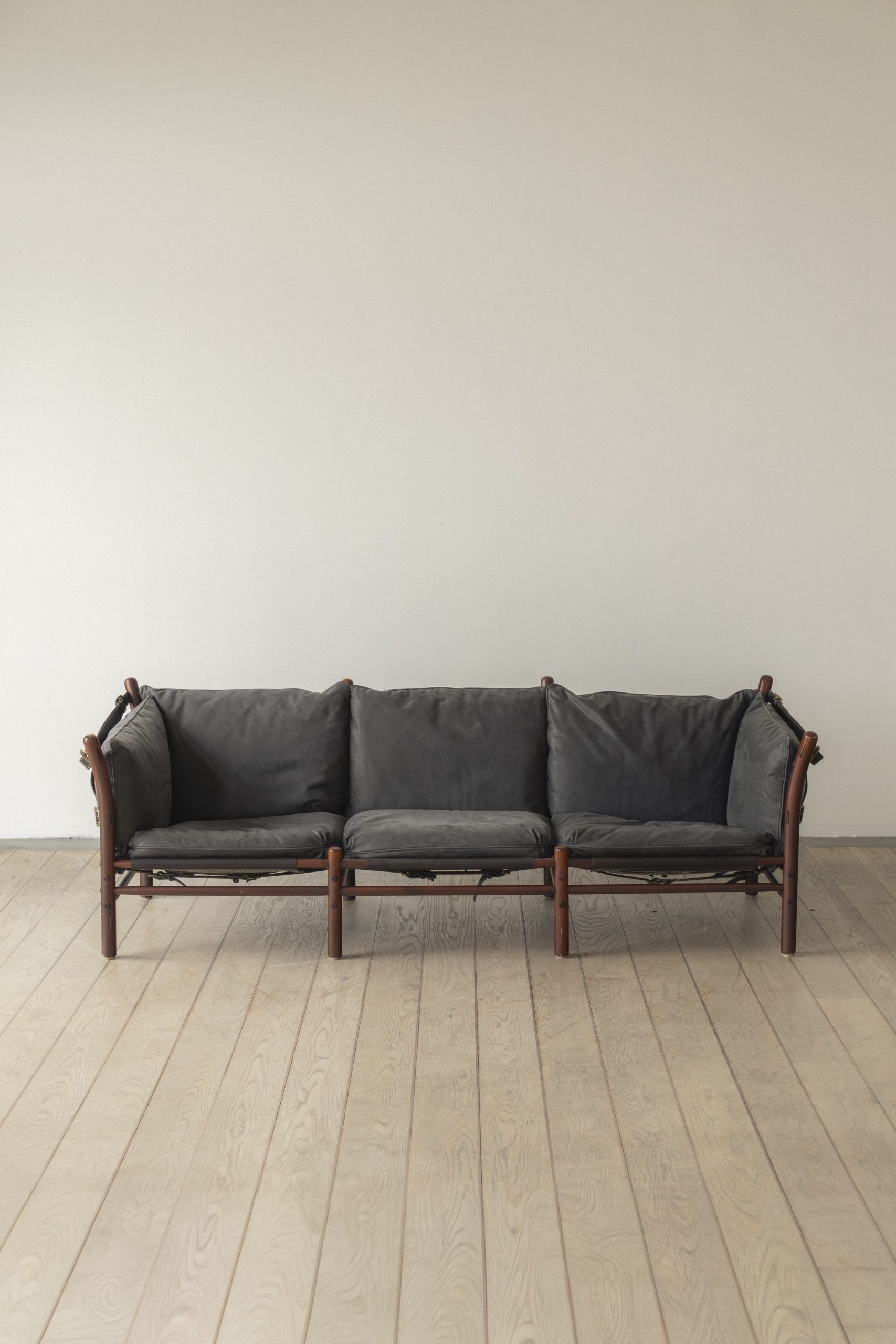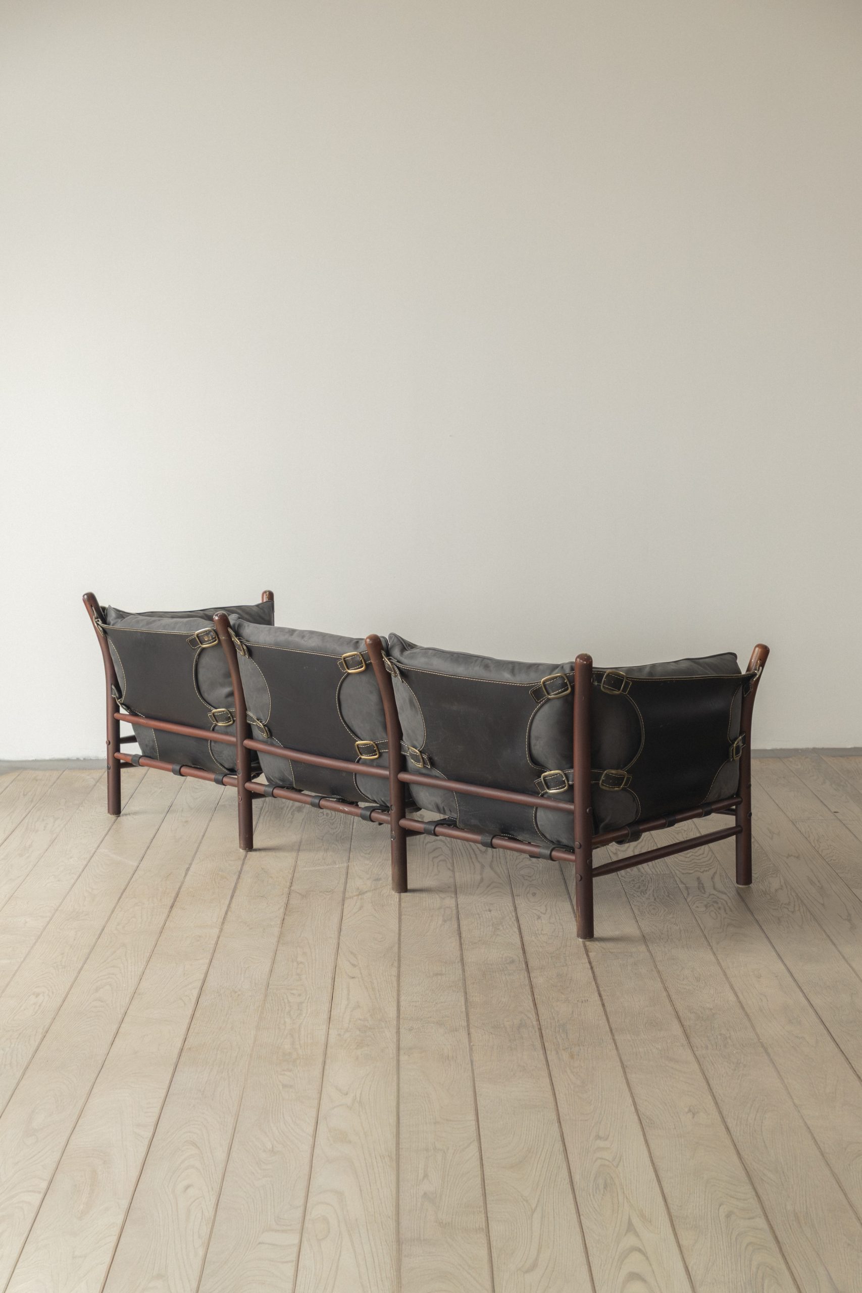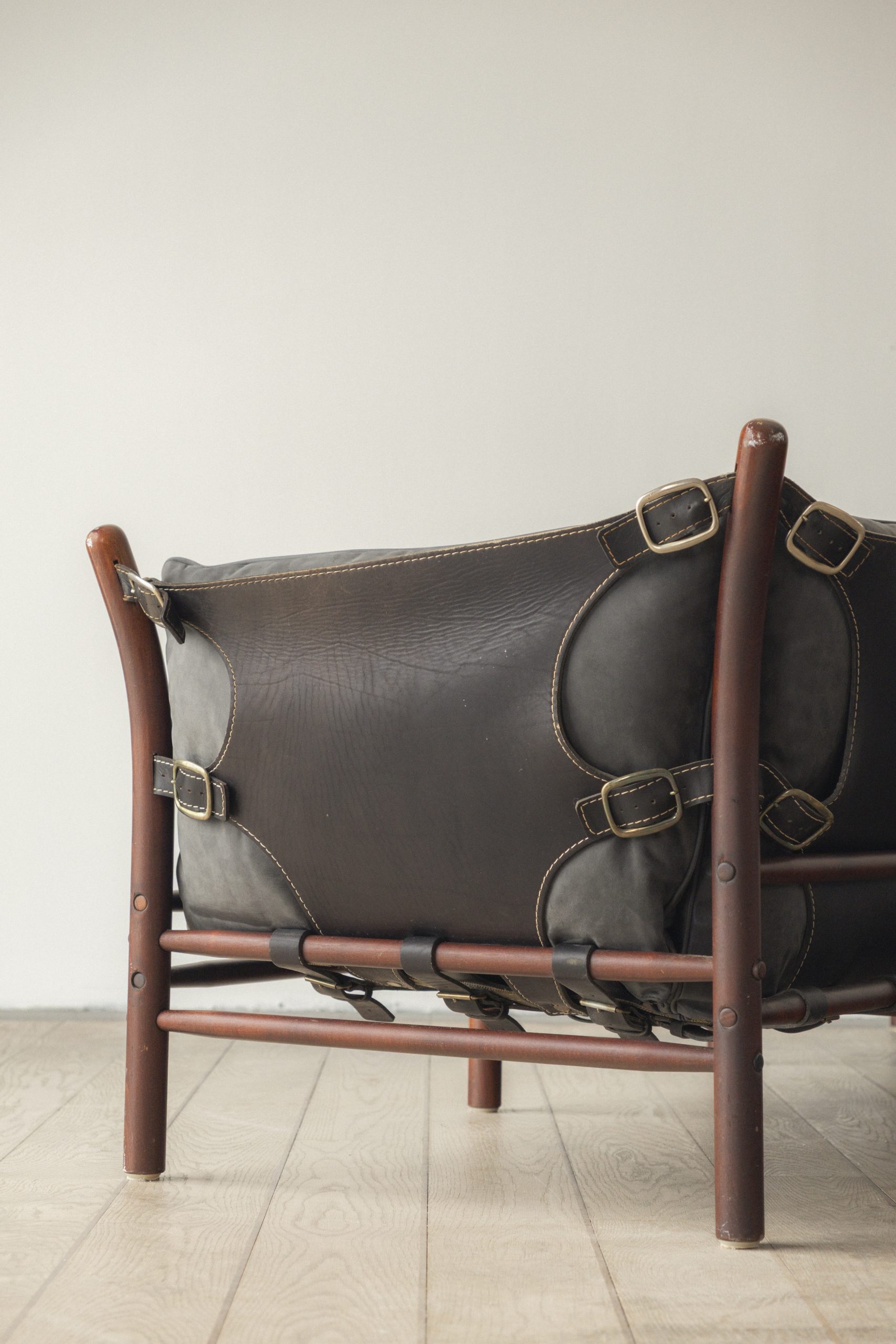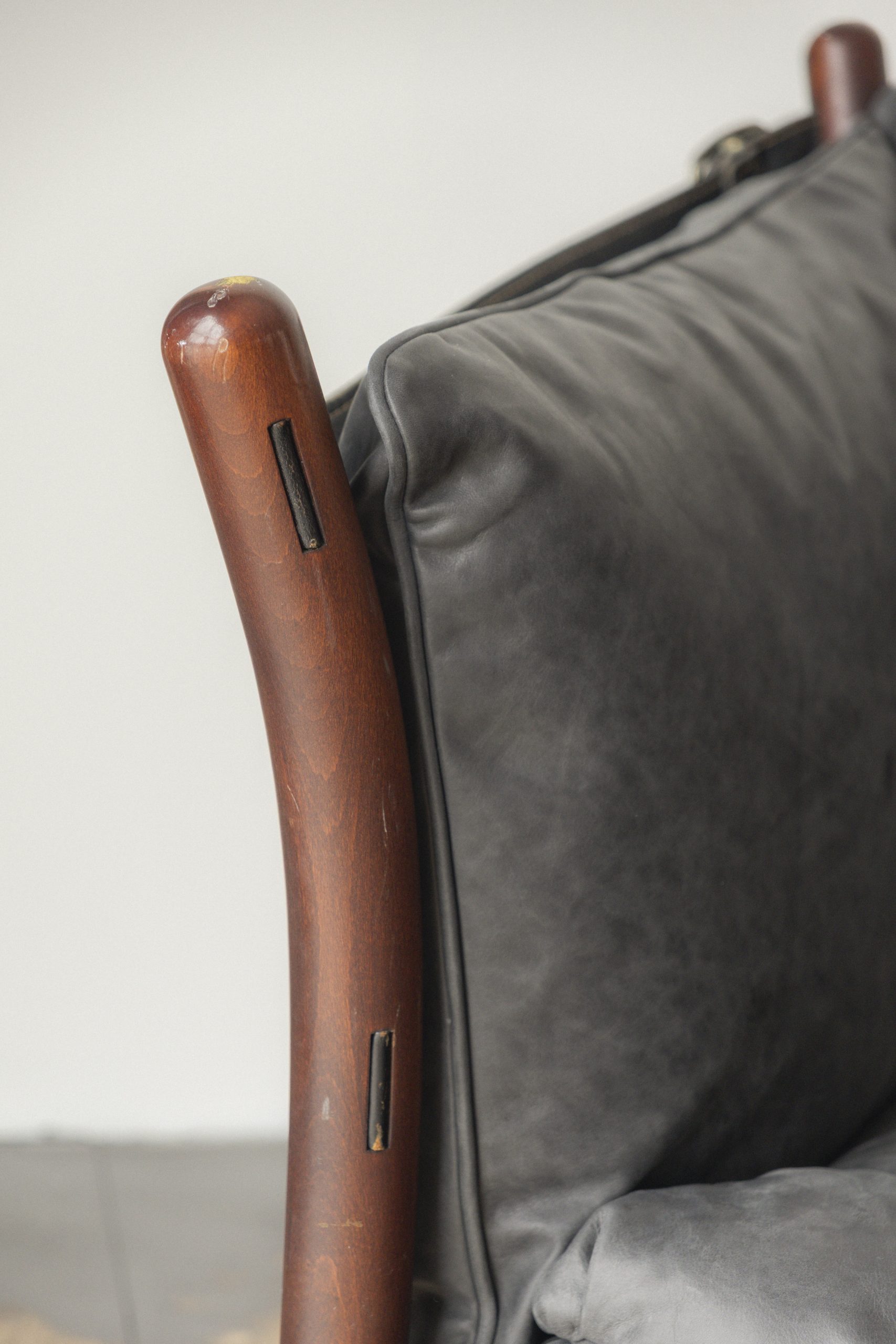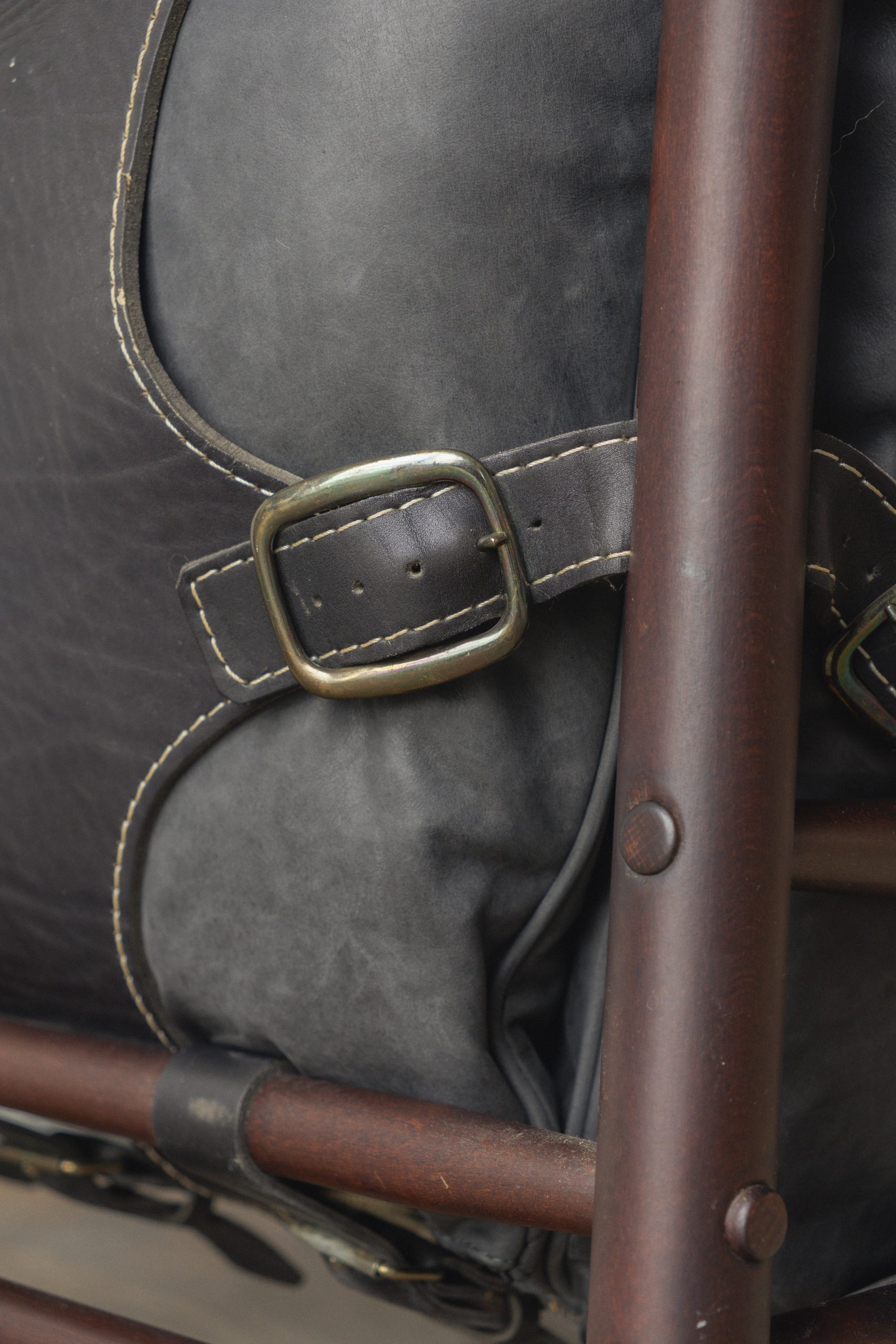 Stained beech, leather, metal