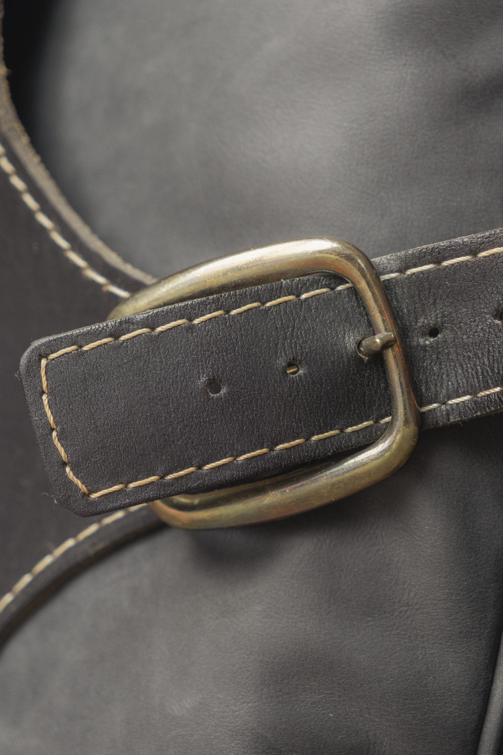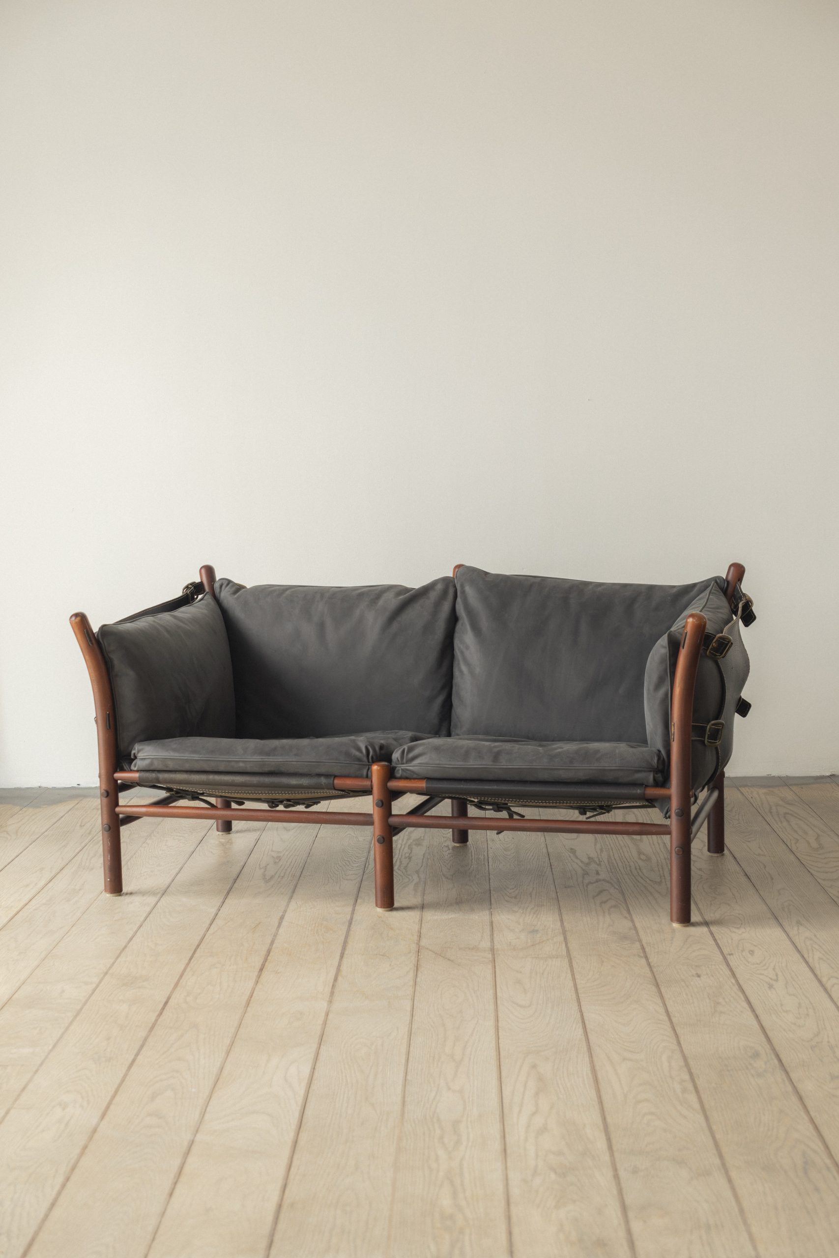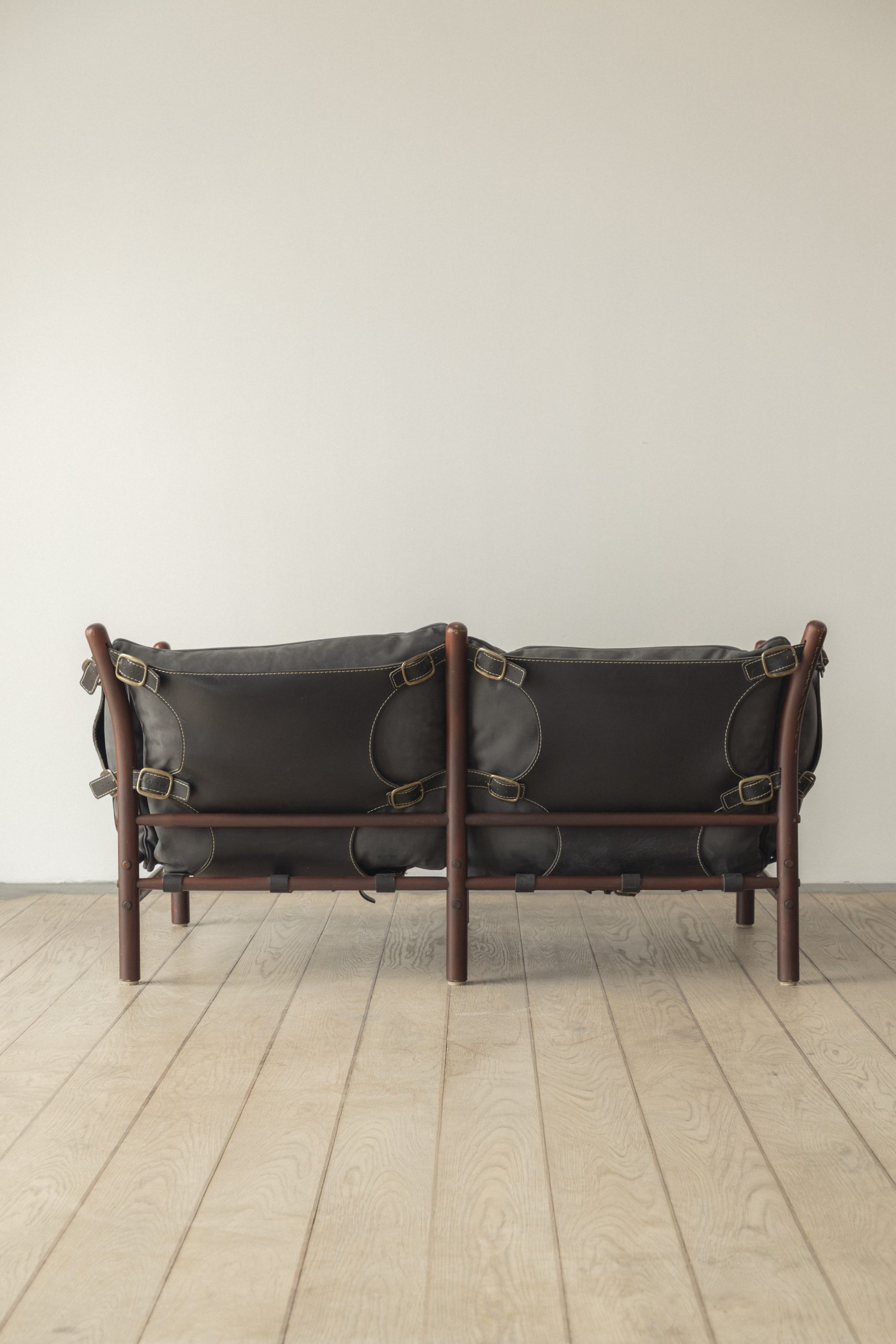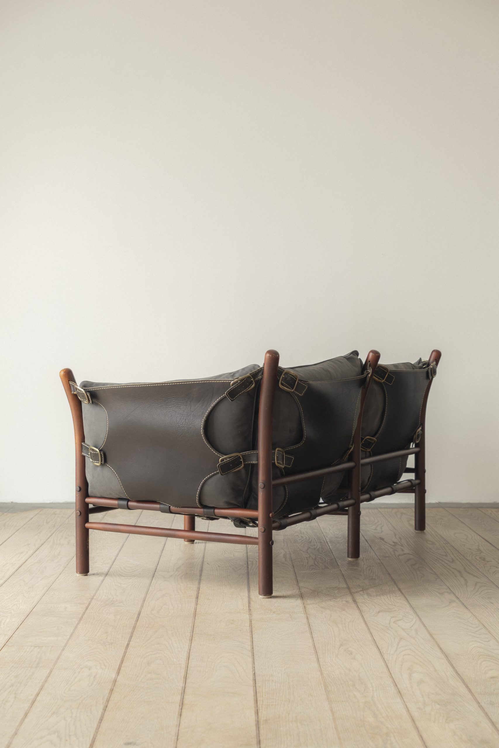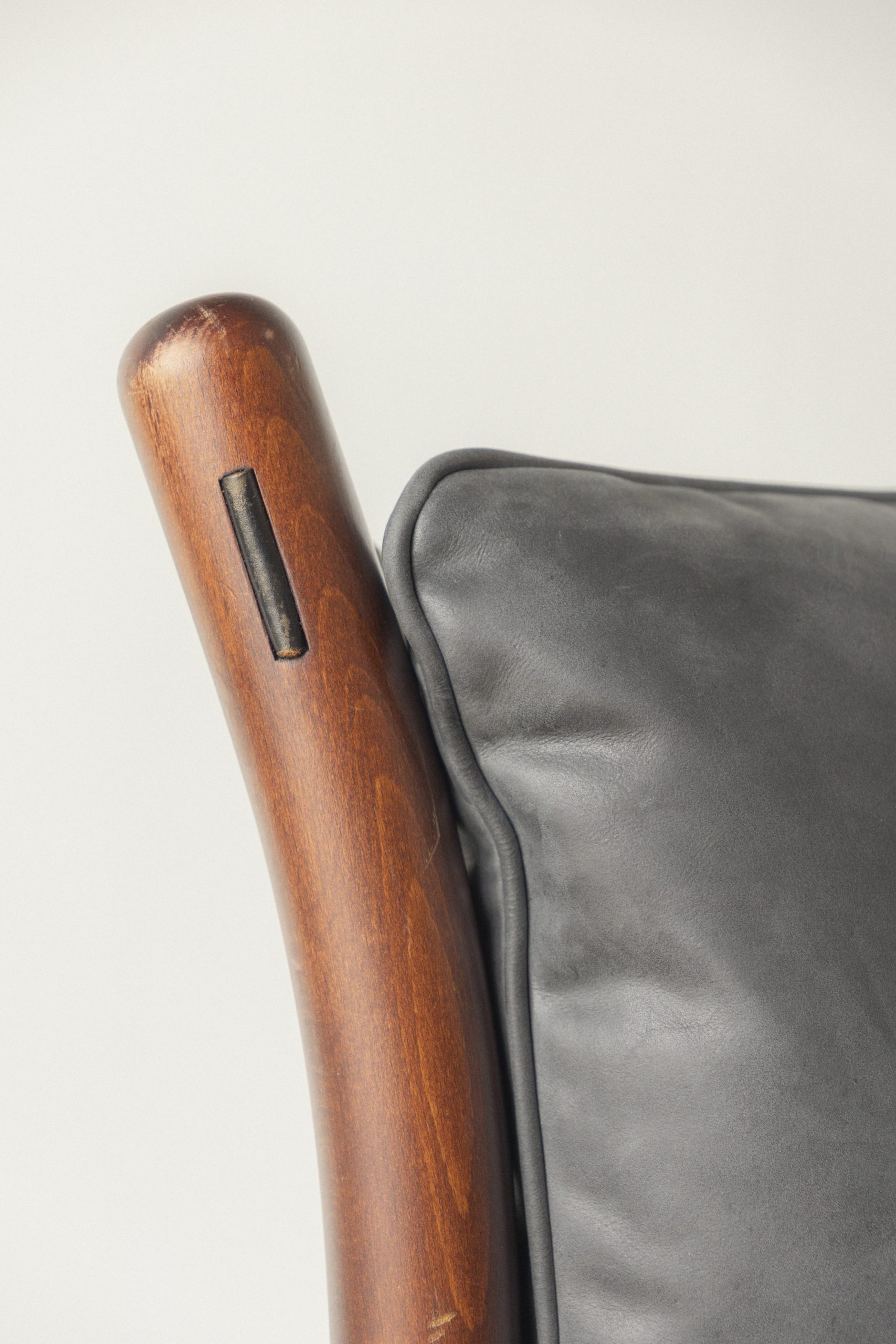 Stained beech, leather, metal