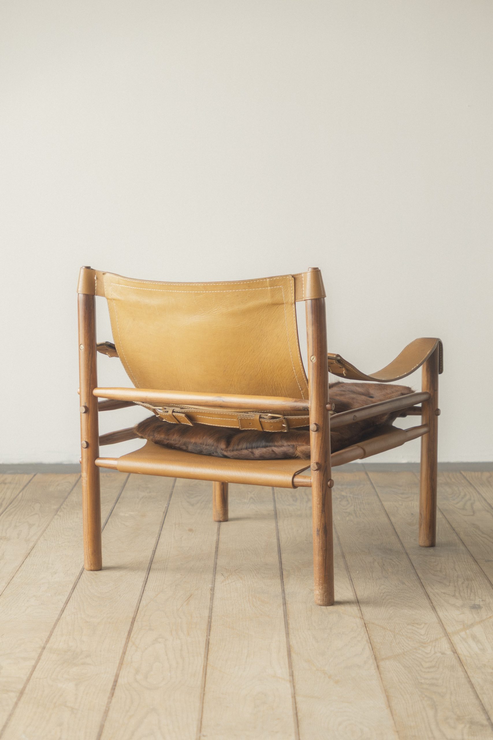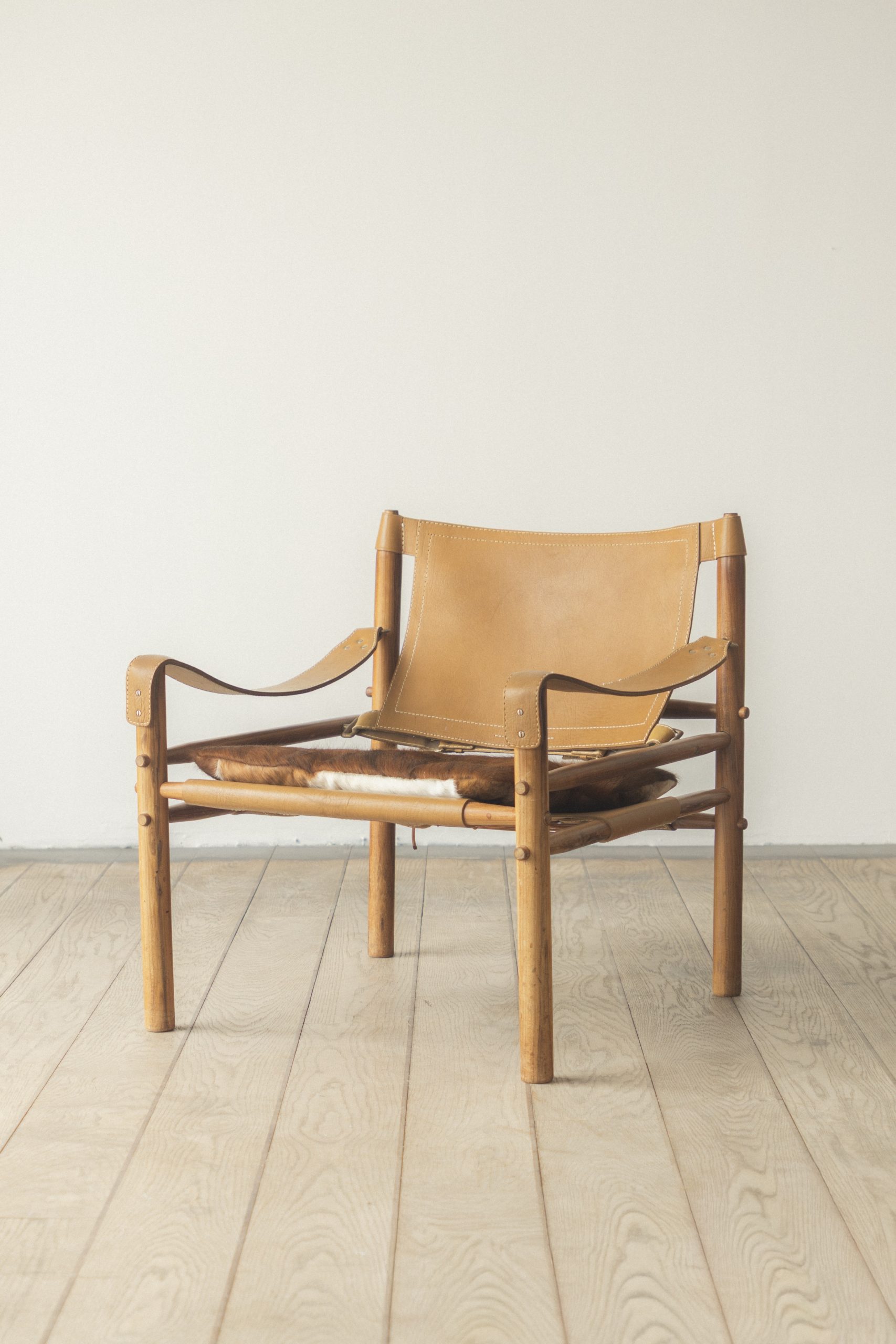Wear consistent with age and use. Reupholstered cushion in cowhide.