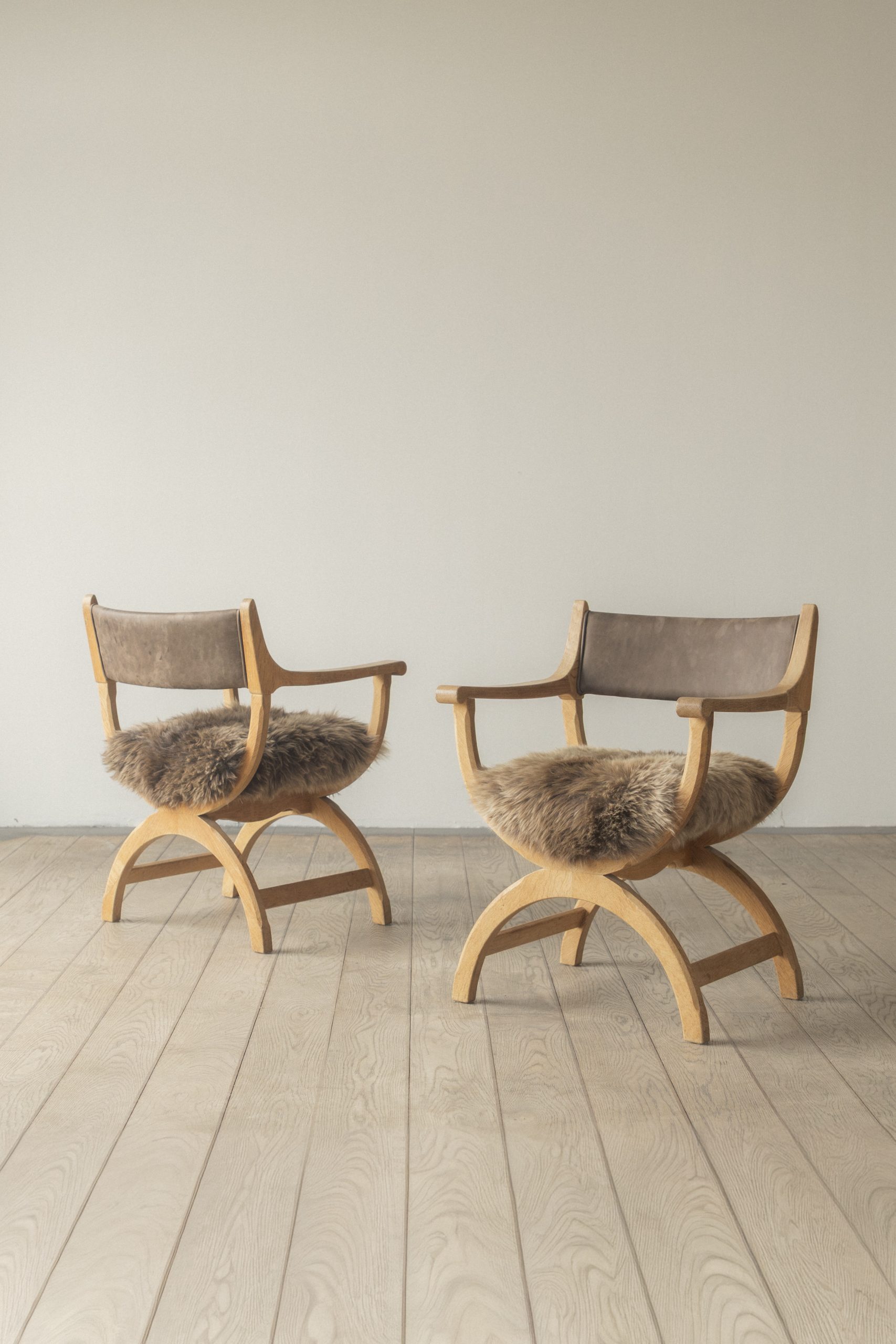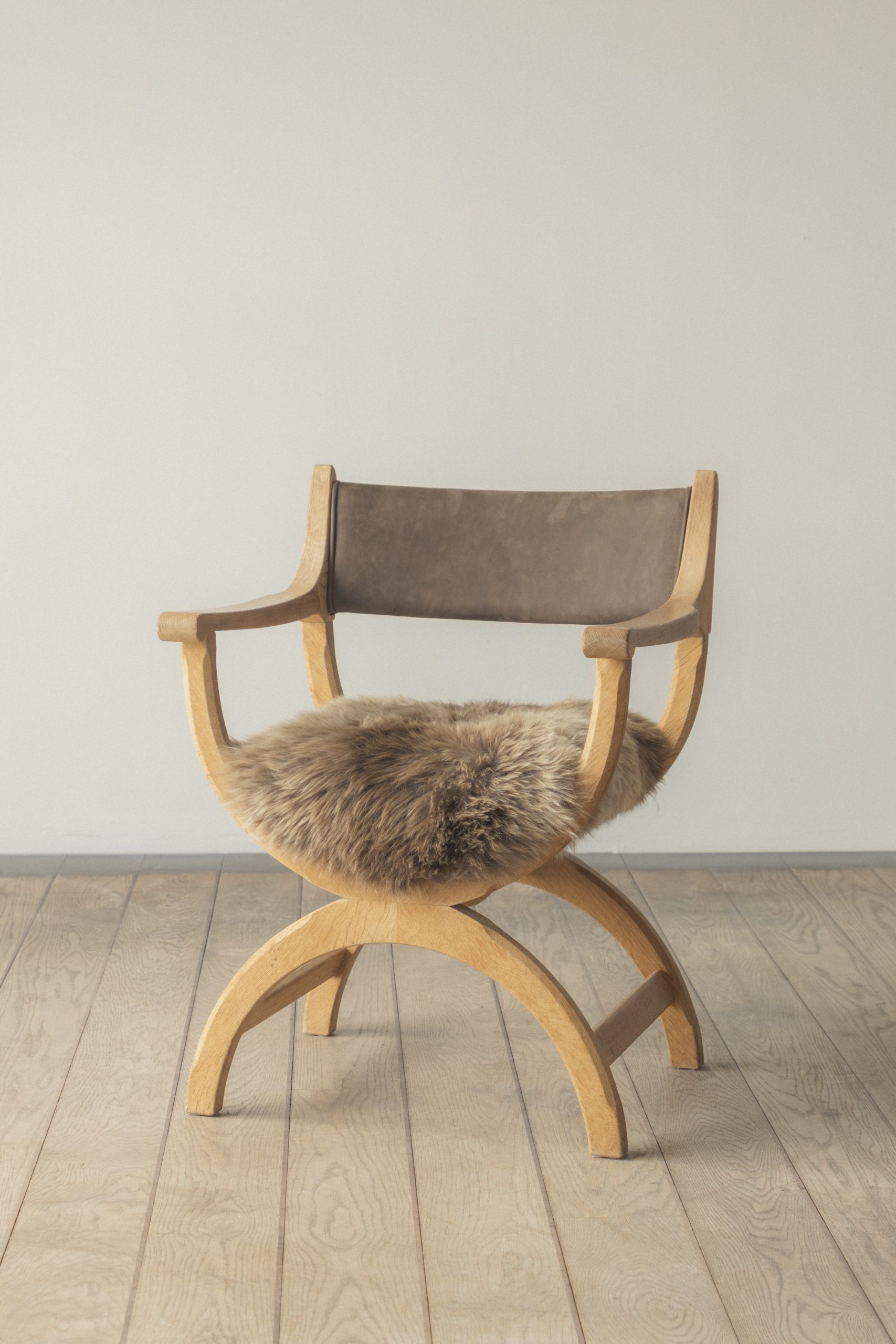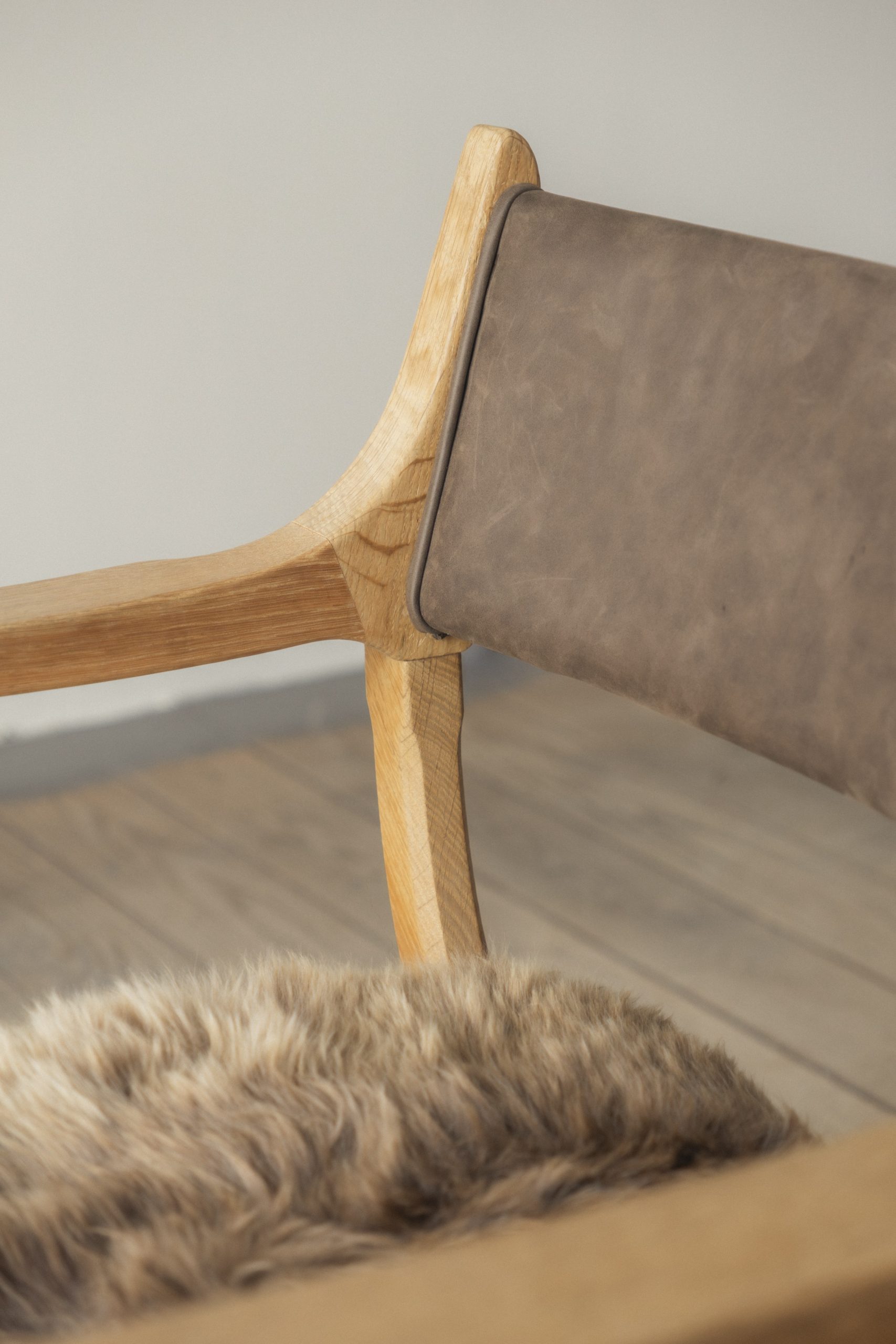 Oak, leather, sheepskin